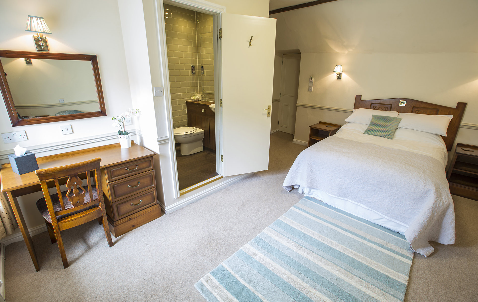 Our double bedrooms offer a comfortable night’s sleep after a day spent exploring the Peak District and beyond.